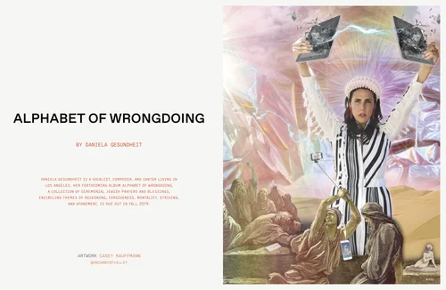 The initial seeds for Alphabet of Wrongdoing were planted a few years ago when fellow Toronto musician Jennifer Castle asked Gesundheit to perform some prayers before a show in L.A. as a way of “purifying” the space. Afterwards, “all these super-cool art kids came up and wanted to talk about it, and the response was one of such curiosity and intrigue that it sparked the idea for me that it was possible to share this music with people and there could be meaning to it,” Gesundheit says.